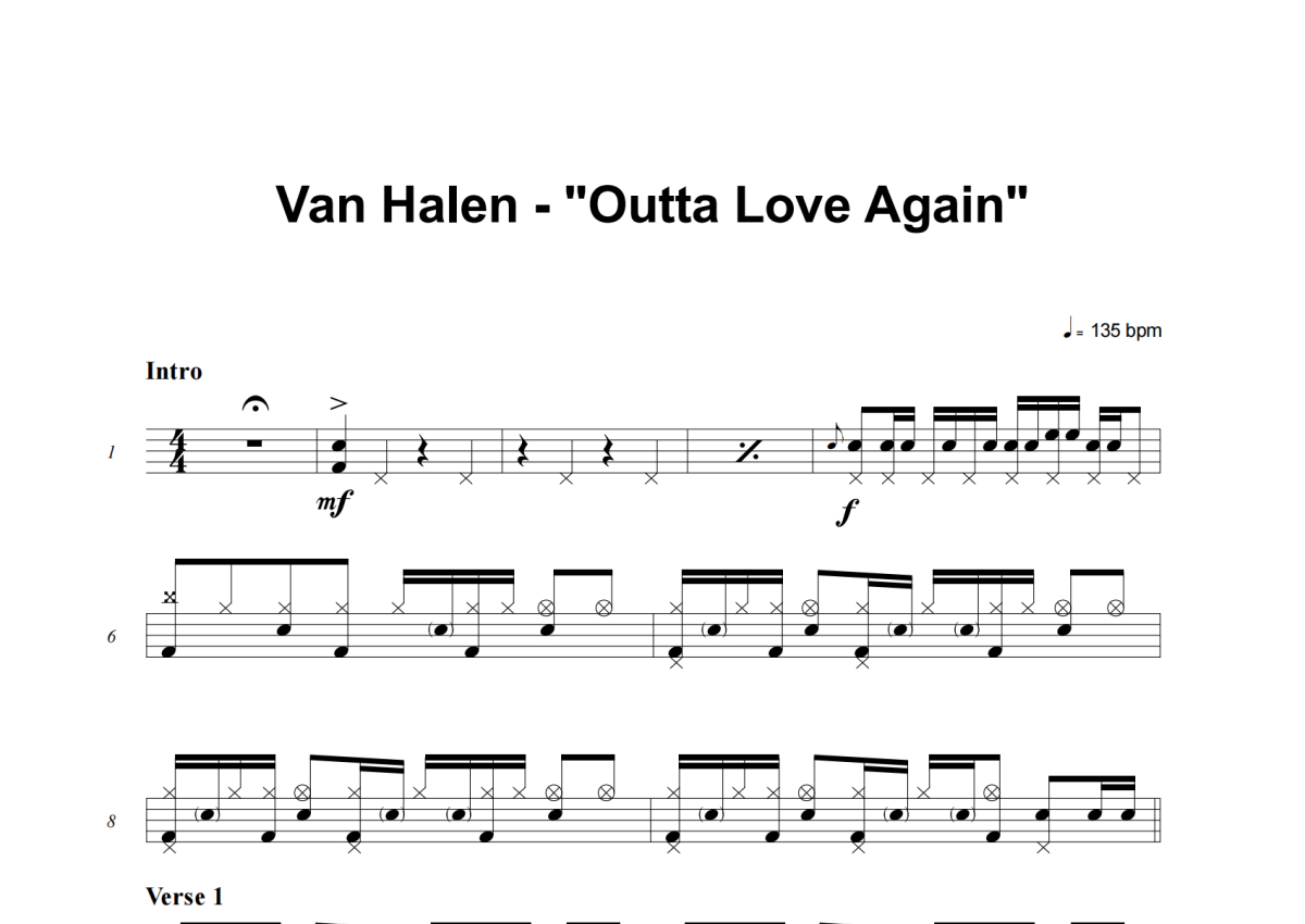 Van Halen《Outta Love Again》架子鼓谱