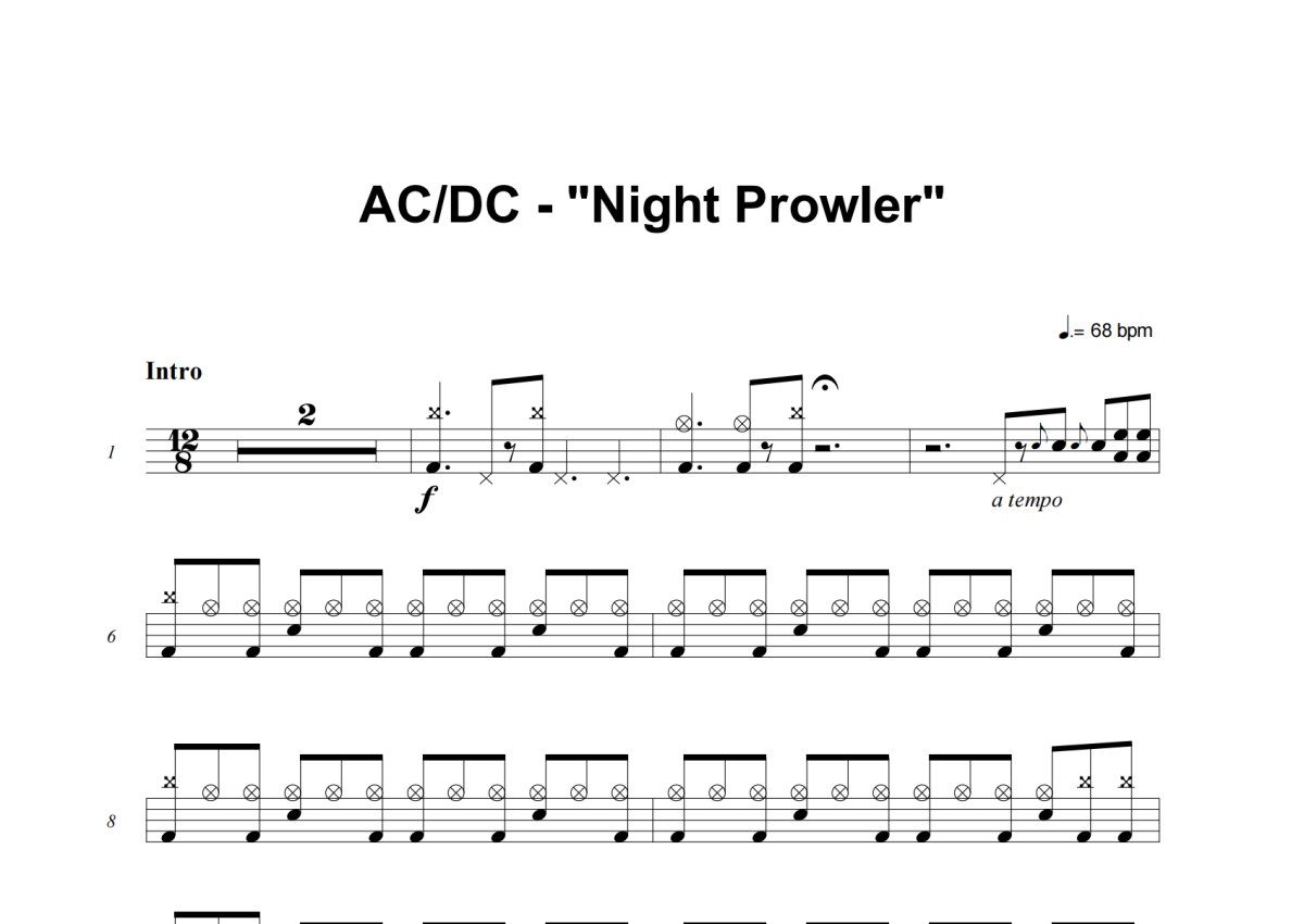 《Night Prowler》是AC_DC演唱的一首歌曲,这份架子鼓谱共有六张高清图谱,图谱由 @举个例子 编配上传,图谱使用五线谱编配,使用这份Night Prowler架子鼓谱,你将能够轻松地敲打出这首AC_DC的Night Prowler,快来尝试吧。