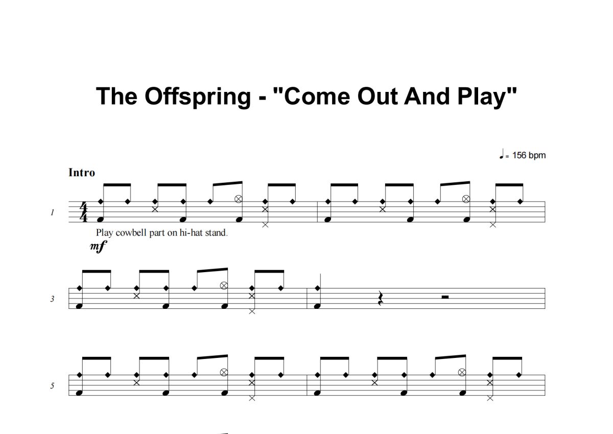 The Offspring《Come Out And Play》架子鼓谱