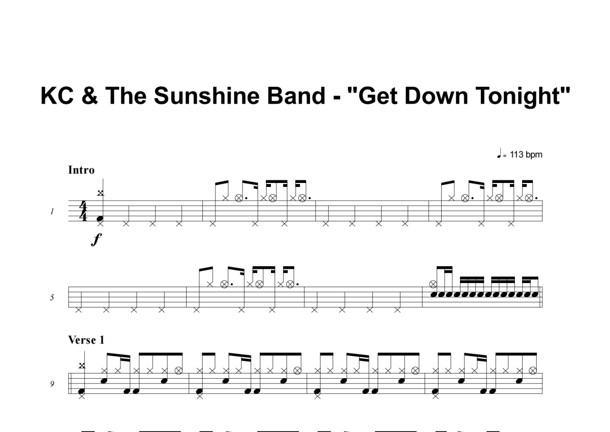 KC & The Sunshine Band《Get Down Tonight》架子鼓谱