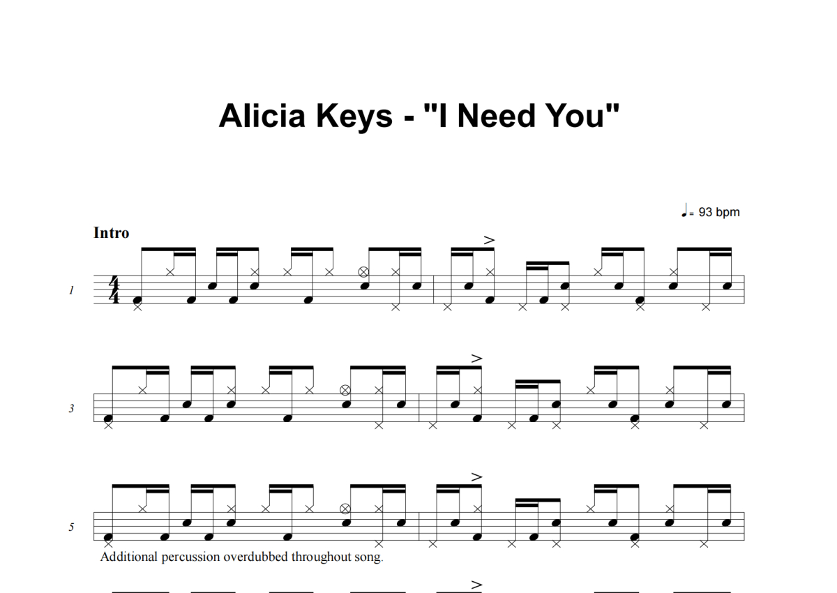 Alicia Keys《I Need You》架子鼓谱