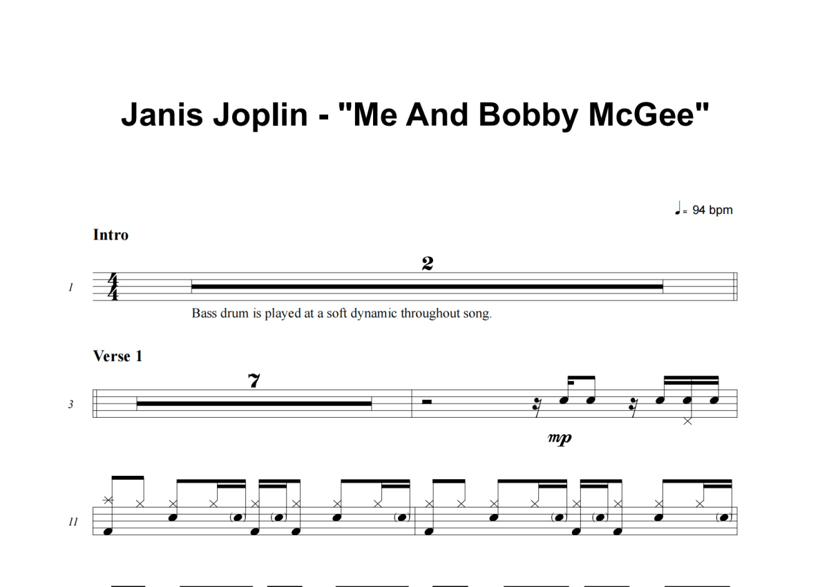 Janis Joplin《Me And Bobby McGee》架子鼓谱