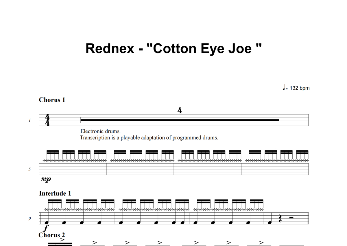 Rednex《Cotton Eyed Joe》架子鼓谱