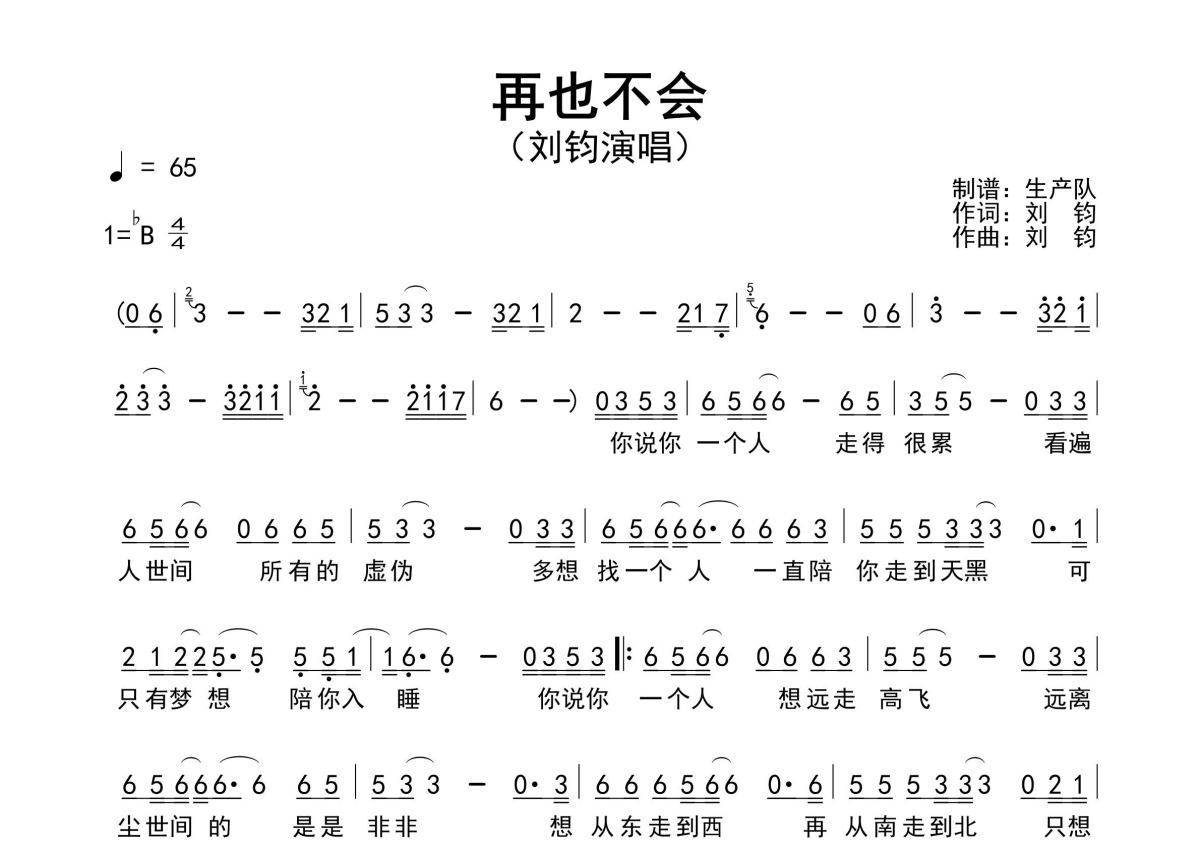 刘钧《再也不会》简谱 - 原版简谱