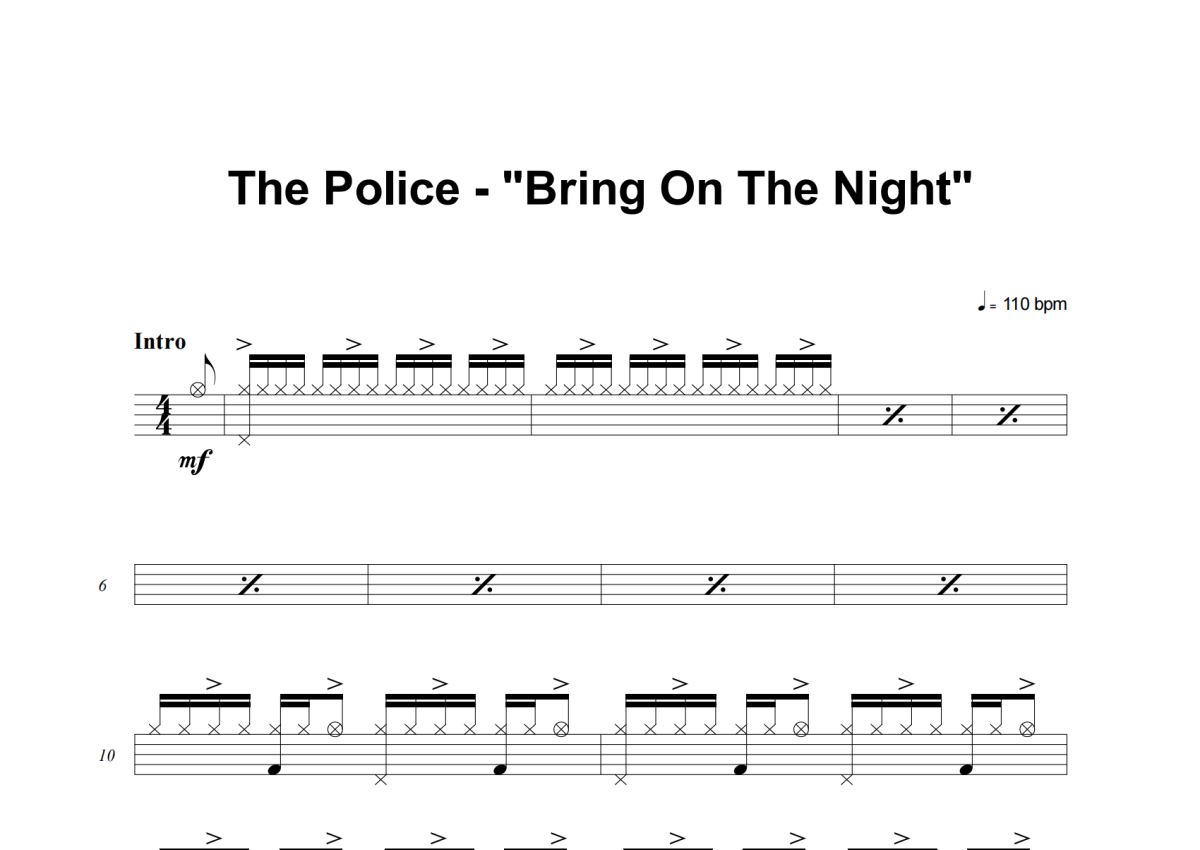 The Police《Bring On The Night》架子鼓谱