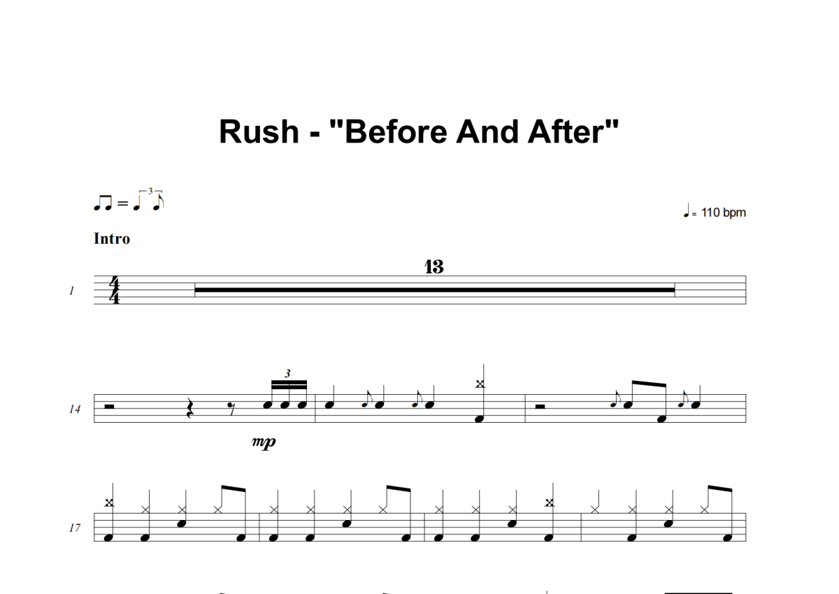 Rush《Before And After》架子鼓谱