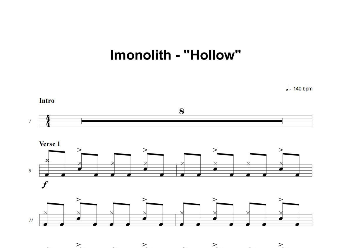 Imonolith《Hollow》架子鼓谱