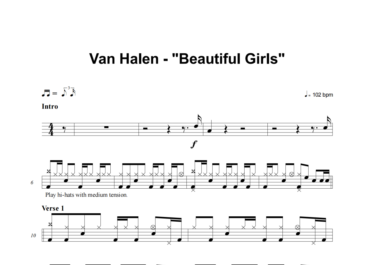 Van Halen《Beautiful Girls》架子鼓谱