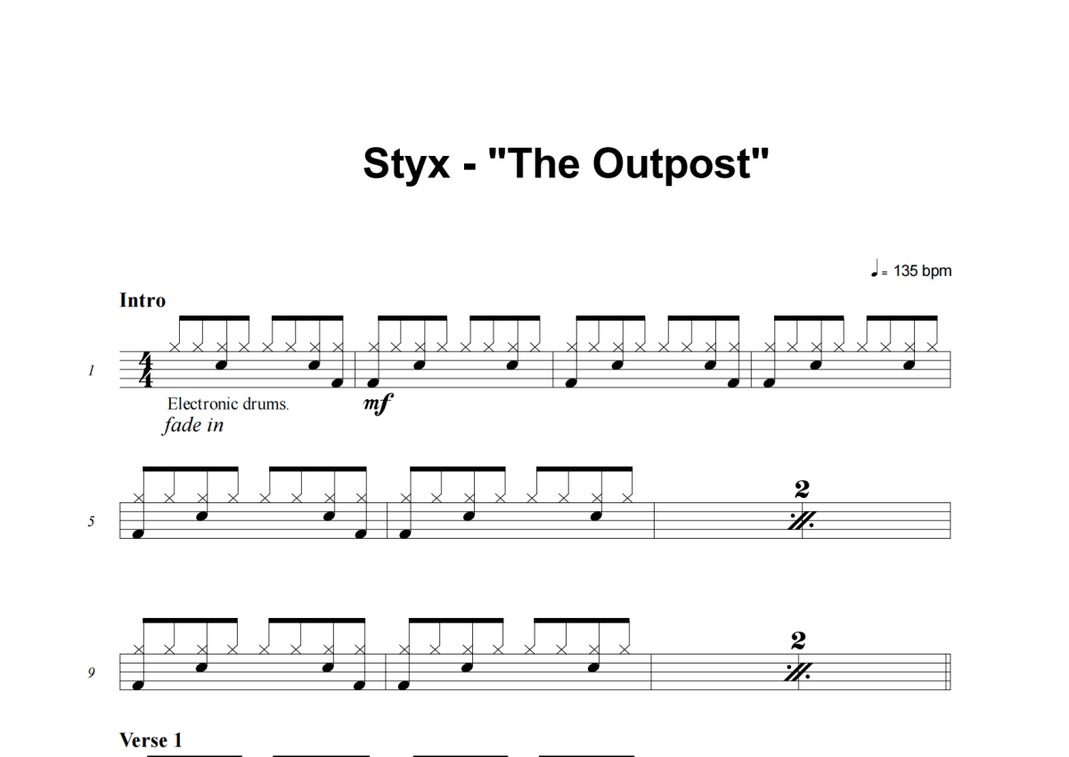 Styx《The Outpost》架子鼓谱