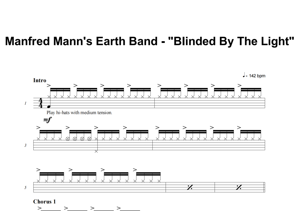 Manfred Mann's Earth Band《Blinded By The Light》架子鼓谱