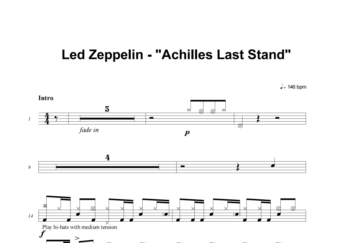 Led Zeppelin《Achilles Last Stand》架子鼓谱