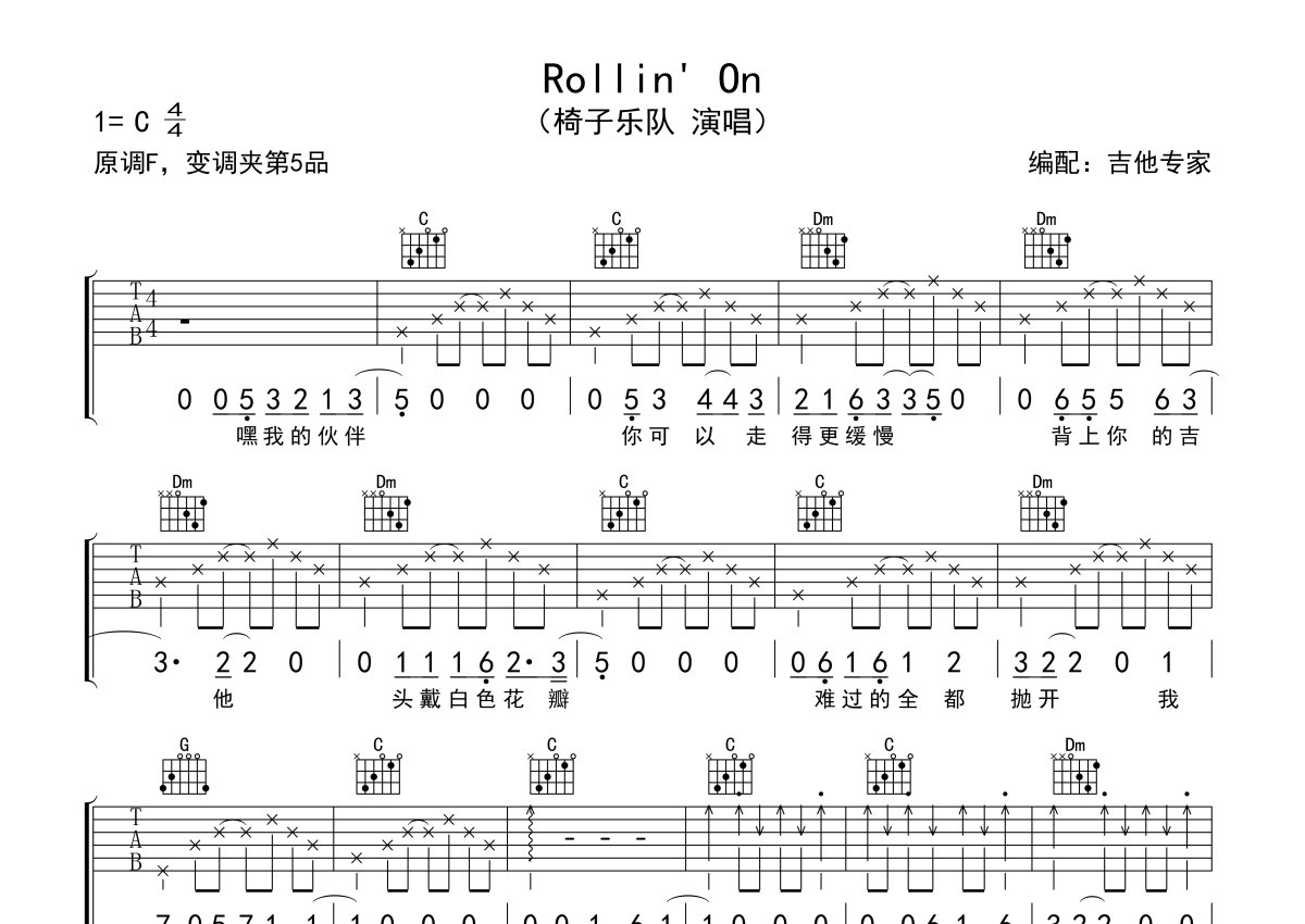 椅子乐队《Rollin' On》吉他谱 - C调弹唱六线谱