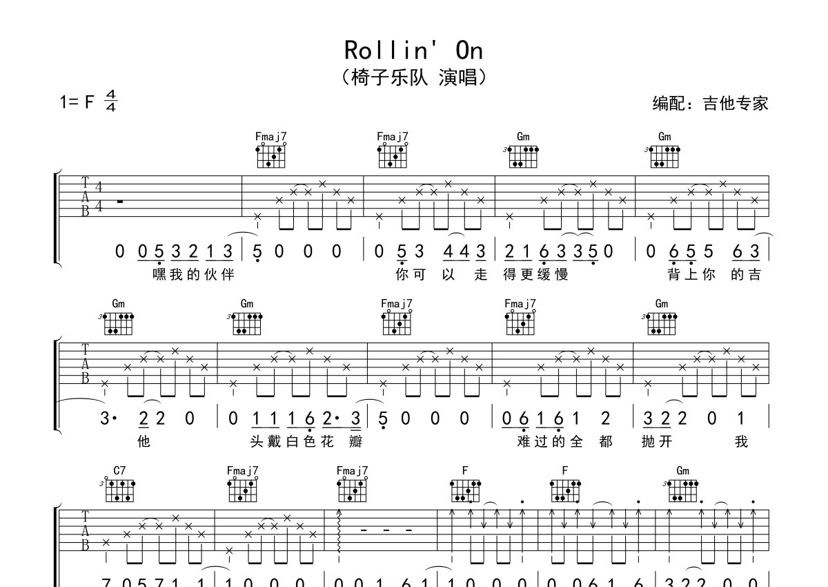 椅子乐队《Rollin' On》吉他谱 - F调弹唱六线谱