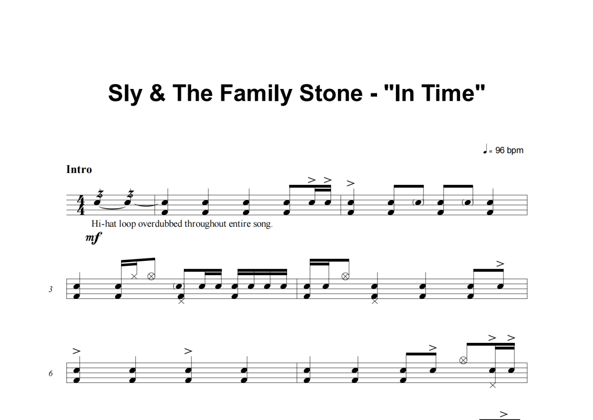 Sly & The Family Stone《In Time》架子鼓谱