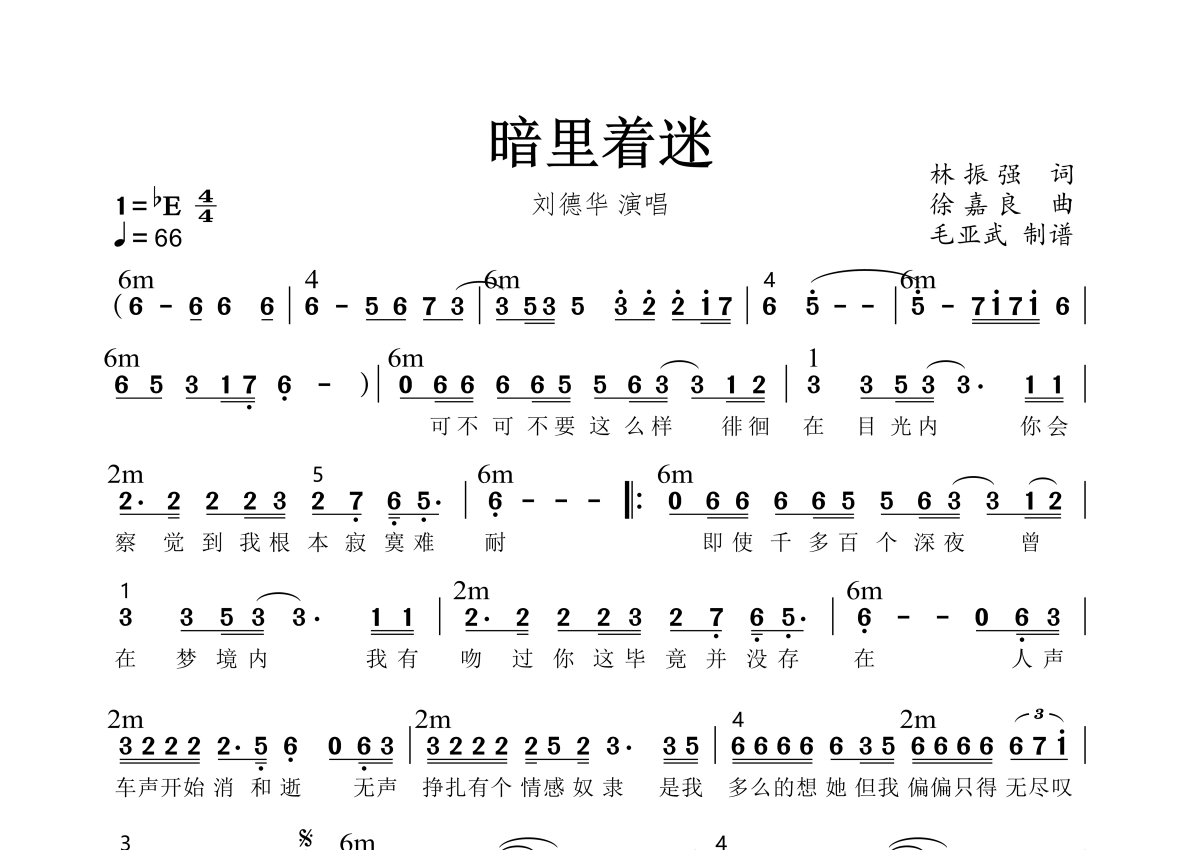 暗里着迷简谱 - 刘德华演唱