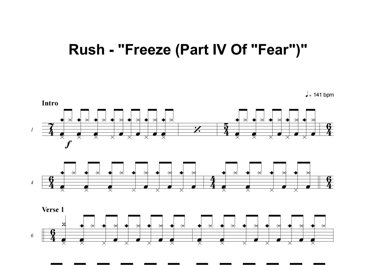 Rush《Freeze (Part IV Of Fear)》架子鼓谱
