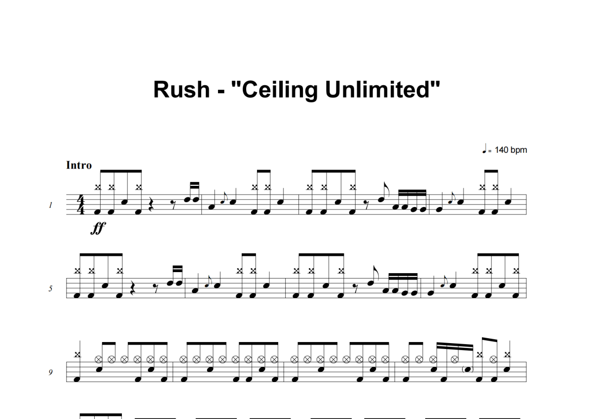 《Ceiling Unlimited》是Rush演唱的一首歌曲,这份架子鼓谱共有八张高清图谱,图谱由 @庄颜 编配上传,图谱使用五线谱编配,使用这份Ceiling Unlimited架子鼓谱,你将能够轻松地敲打出这首Rush的Ceiling Unlimited,快来尝试吧。