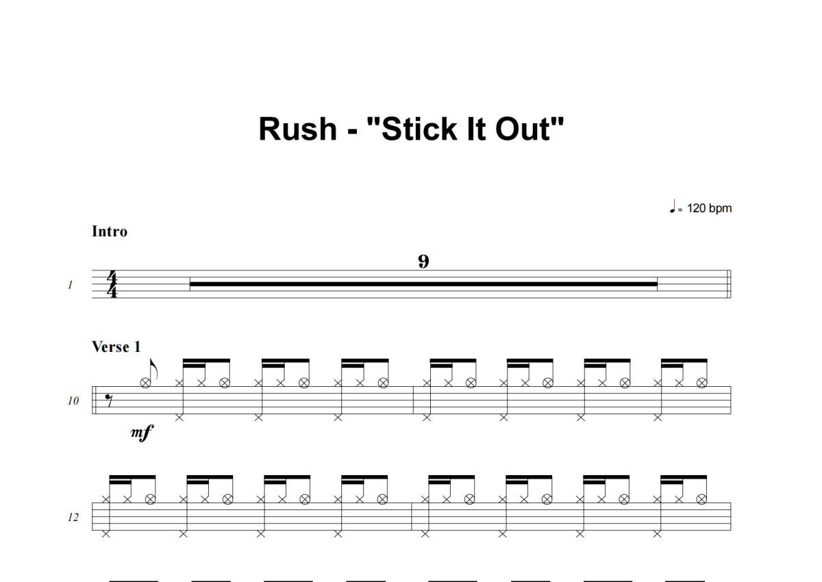 Rush《Stick It Out》架子鼓谱