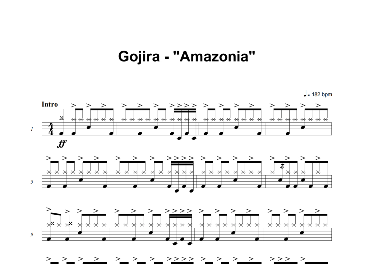 《Amazonia》是Gojira演唱的一首歌曲,这份架子鼓谱共有七张高清图谱,图谱由 @庄颜 编配上传,图谱使用五线谱编配,使用这份Amazonia架子鼓谱,你将能够轻松地敲打出这首Gojira的Amazonia,快来尝试吧。