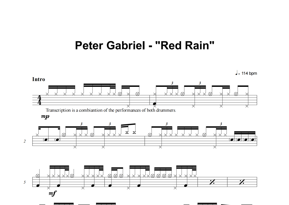 Peter Gabriel《Red Rain》架子鼓谱
