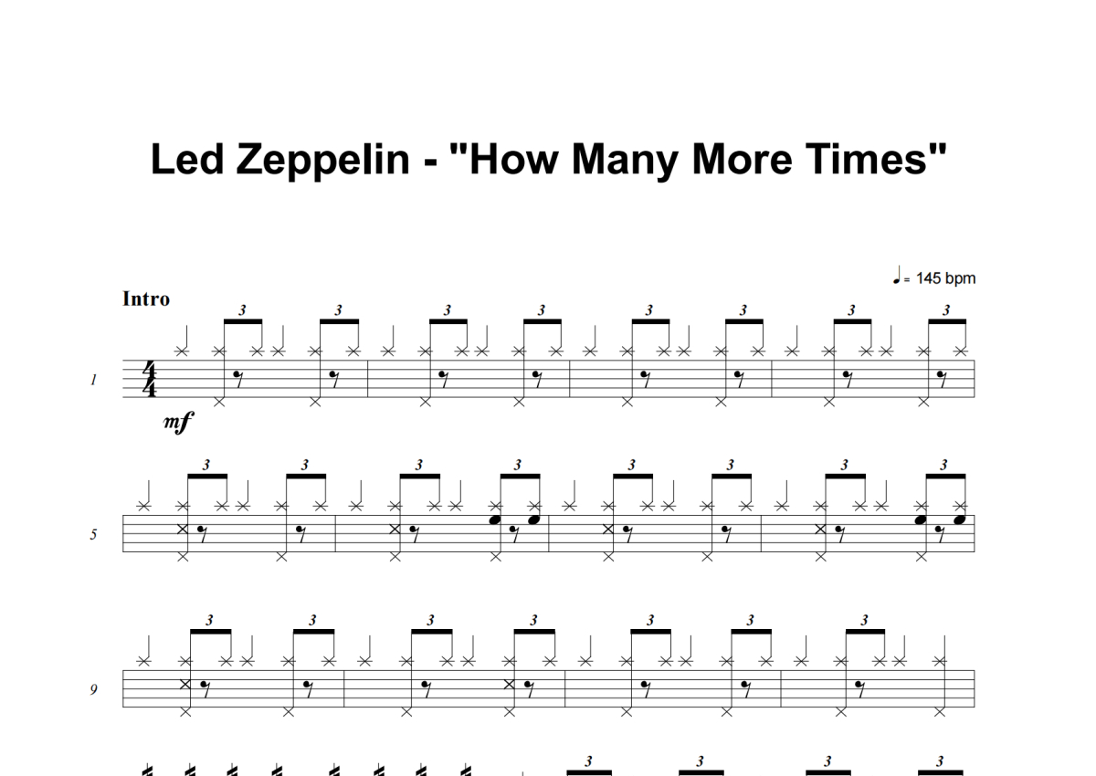 《How Many More Times》是Led Zeppelin演唱的一首歌曲,这份架子鼓谱共有十张高清图谱,图谱由 @庄颜 编配上传,图谱使用五线谱编配,使用这份How Many More Times架子鼓谱,你将能够轻松地敲打出这首Led Zeppelin的How Many More Times,快来尝试吧。
