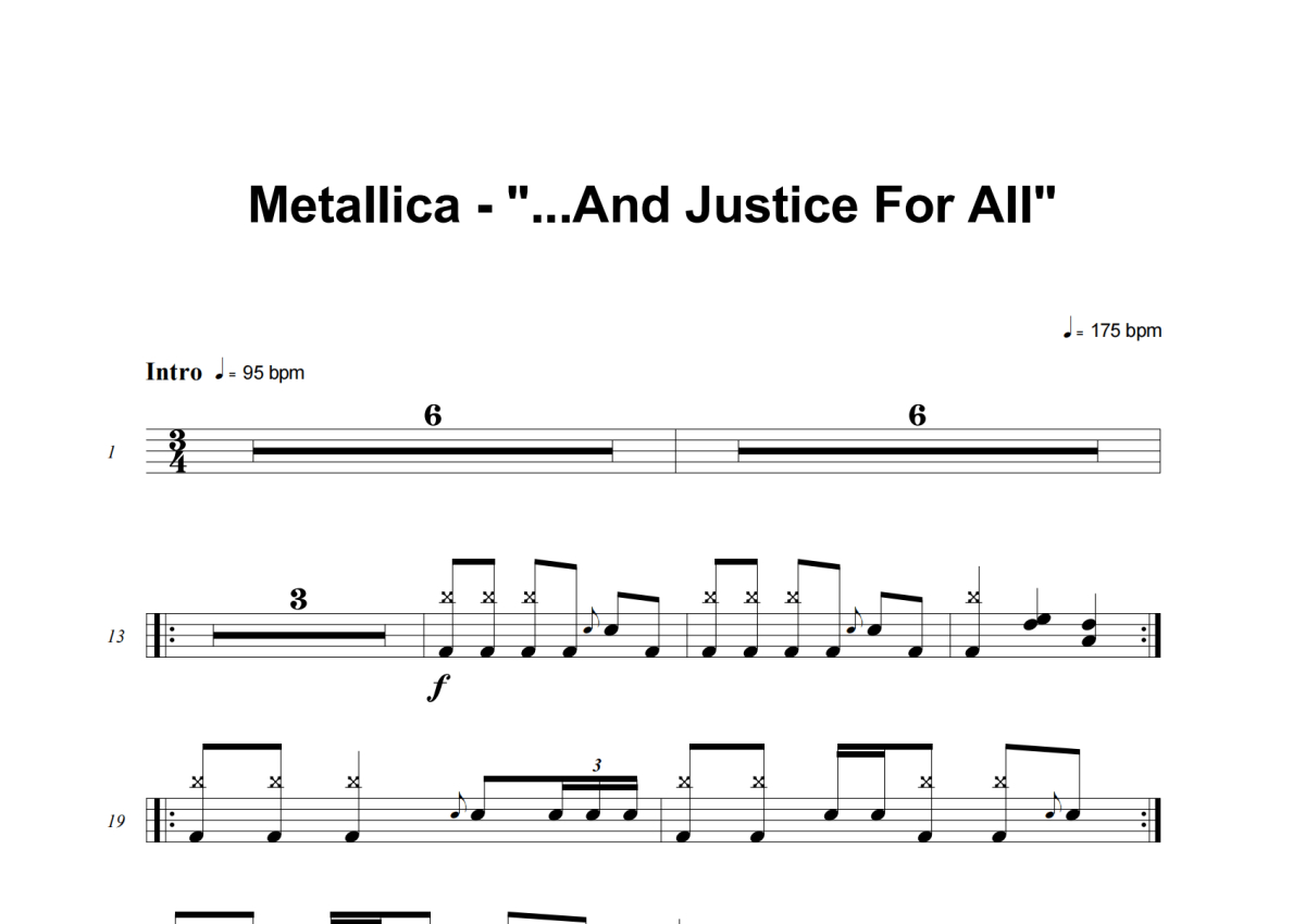《...And Justice For All》是Metallica演唱的一首歌曲,这份架子鼓谱共有十一张高清图谱,图谱由 @庄颜 编配上传,图谱使用五线谱编配,使用这份...And Justice For All架子鼓谱,你将能够轻松地敲打出这首Metallica的...And Justice For All,快来尝试吧。