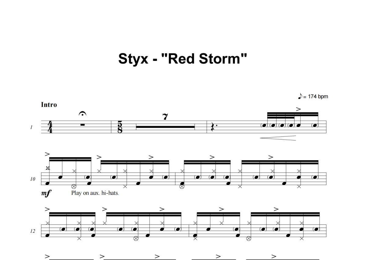 Styx《Red Storm》架子鼓谱