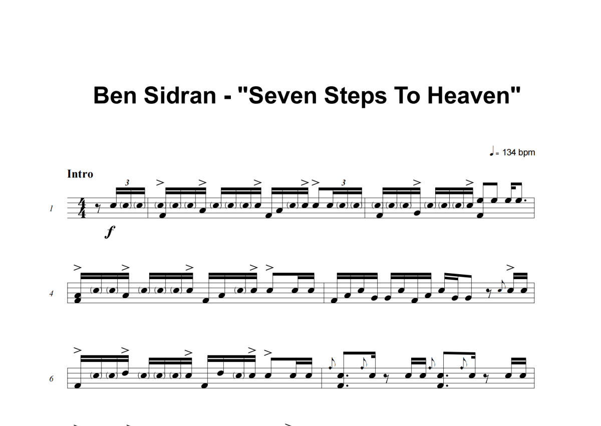 《Seven Steps To Heaven》是Ben Sidran演唱的一首歌曲,这份架子鼓谱共有九张高清图谱,图谱由 @庄颜 编配上传,图谱使用五线谱编配,使用这份Seven Steps To Heaven架子鼓谱,你将能够轻松地敲打出这首Ben Sidran的Seven Steps To Heaven,快来尝试吧。