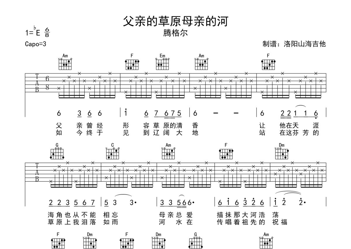 腾格尔《父亲的草原母亲的河》吉他谱 - G调弹唱六线谱