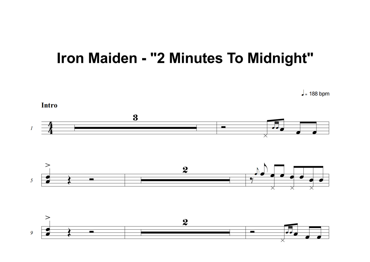 Iron Maiden《2 Minutes To Midnight》架子鼓谱