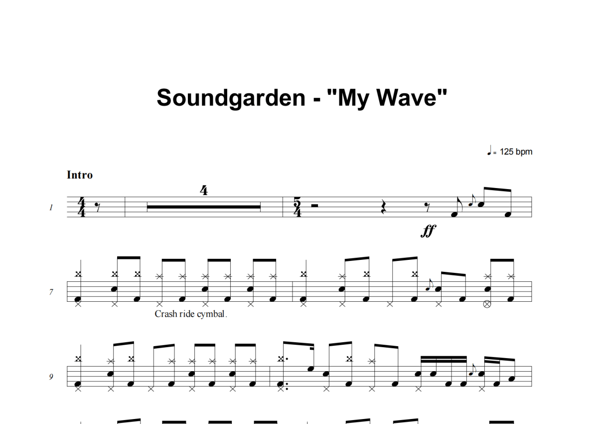 《My Wave》是Soundgarden演唱的一首歌曲,这份架子鼓谱共有六张高清图谱,图谱由 @庄颜 编配上传,图谱使用五线谱编配,使用这份My Wave架子鼓谱,你将能够轻松地敲打出这首Soundgarden的My Wave,快来尝试吧。