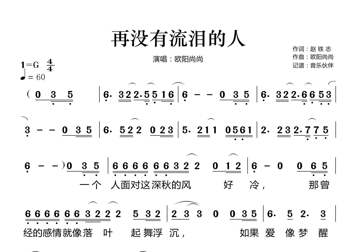 再没有流泪的人简谱 - 欧阳尚尚演唱