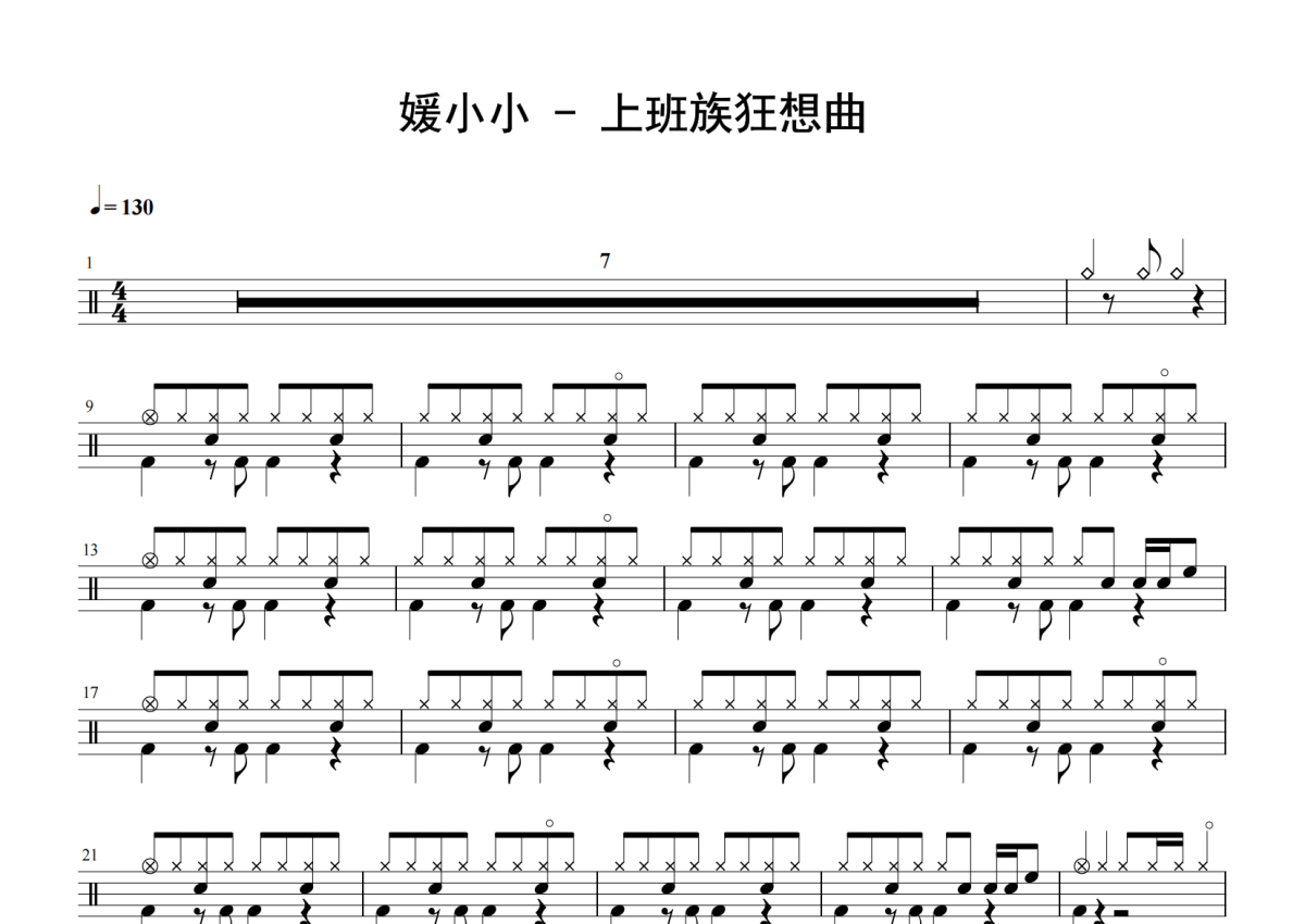 上班族狂想曲架子鼓谱 - 媛小小演唱