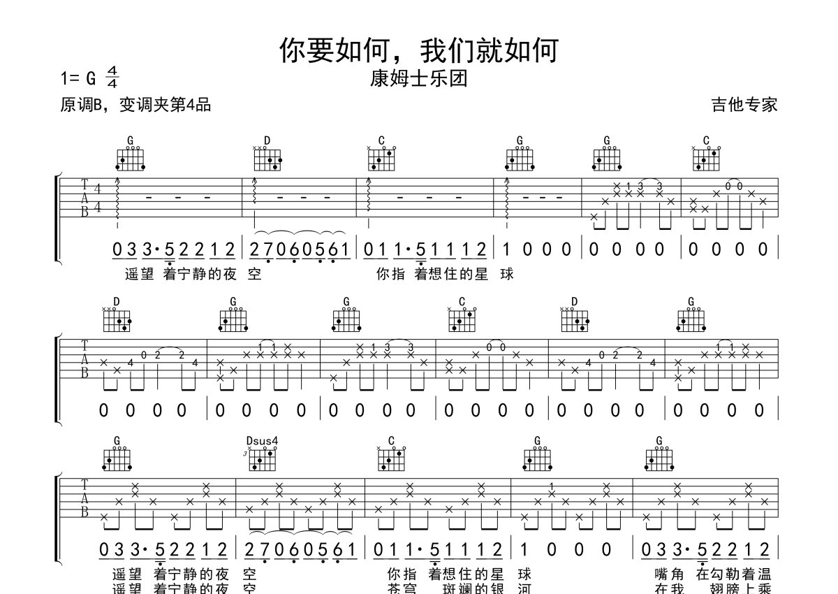 康姆士乐团《你要如何,我们就如何》吉他谱 - G调弹唱六线谱
