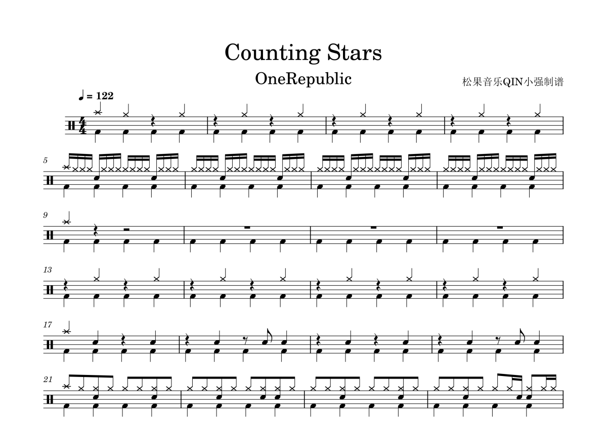 OneRepublic乐队《Counting Stars》架子鼓谱