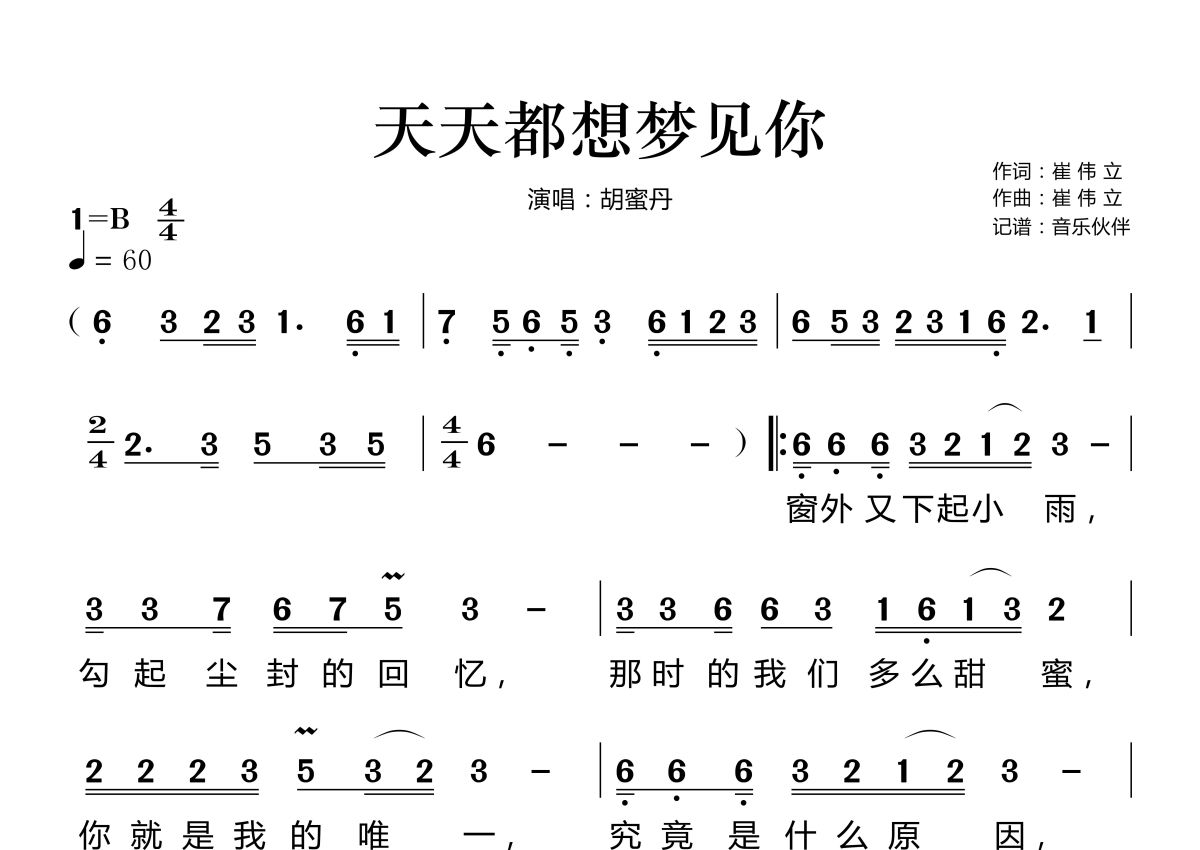 天天都想梦见你简谱 - 胡蜜丹演唱