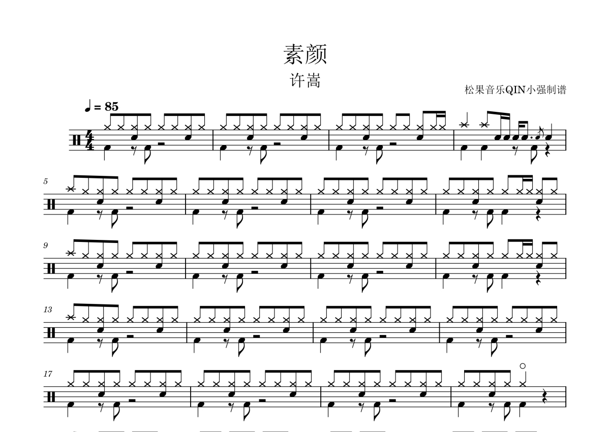 《素颜》是许嵩、何曼婷演唱的一首歌曲,拍号为4/4拍,这份架子鼓谱共有两张高清图谱,图谱由 @松果音乐QIN小强 编配上传,图谱使用五线谱编配,使用这份素颜架子鼓谱,你将能够轻松地敲打出这首许嵩、何曼婷的素颜,快来尝试吧。《素颜》是许嵩、何曼婷演唱的流行歌曲,由许嵩作词、作曲,夏侯哲编曲,于2010年8月18日以单曲形式通过音之邦发行。