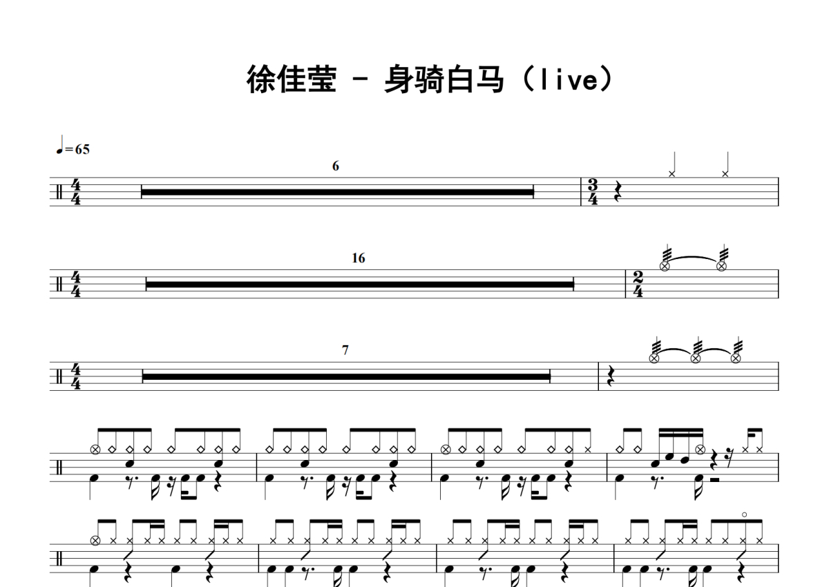 徐佳莹《身骑白马》架子鼓谱 - Live