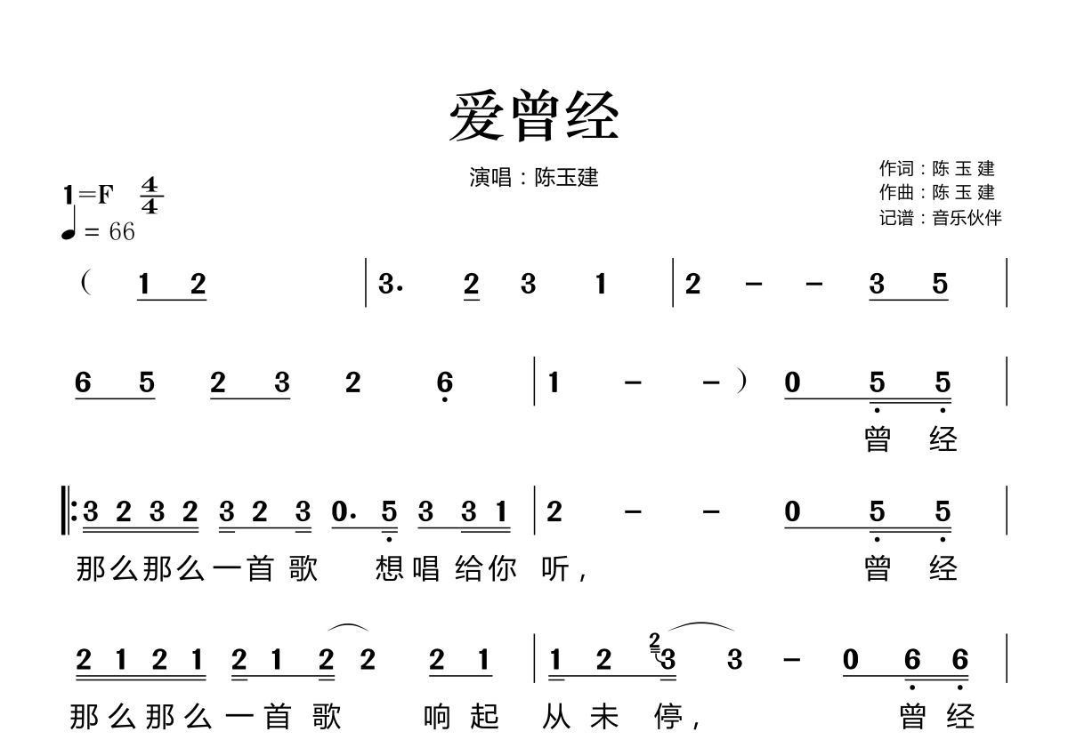 爱曾经简谱 - 陈玉建演唱