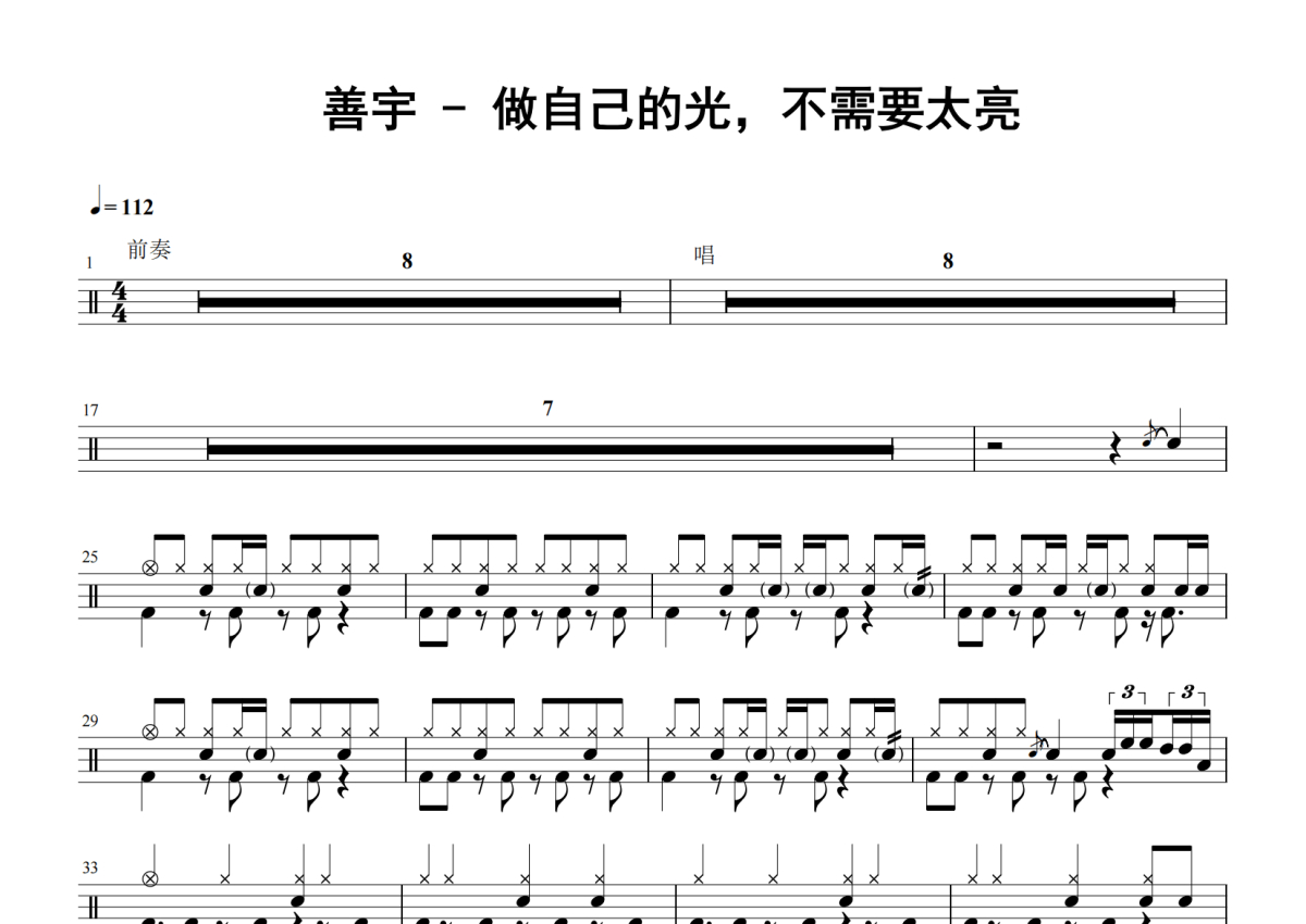 做自己的光,不需要太亮架子鼓谱 - 善宇演唱
