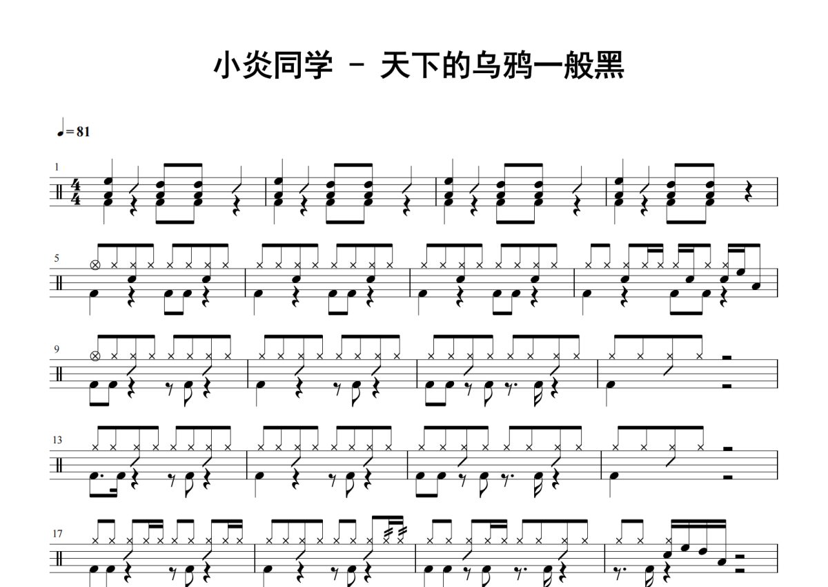 天下的乌鸦一般黑架子鼓谱 - 小炎同学演唱