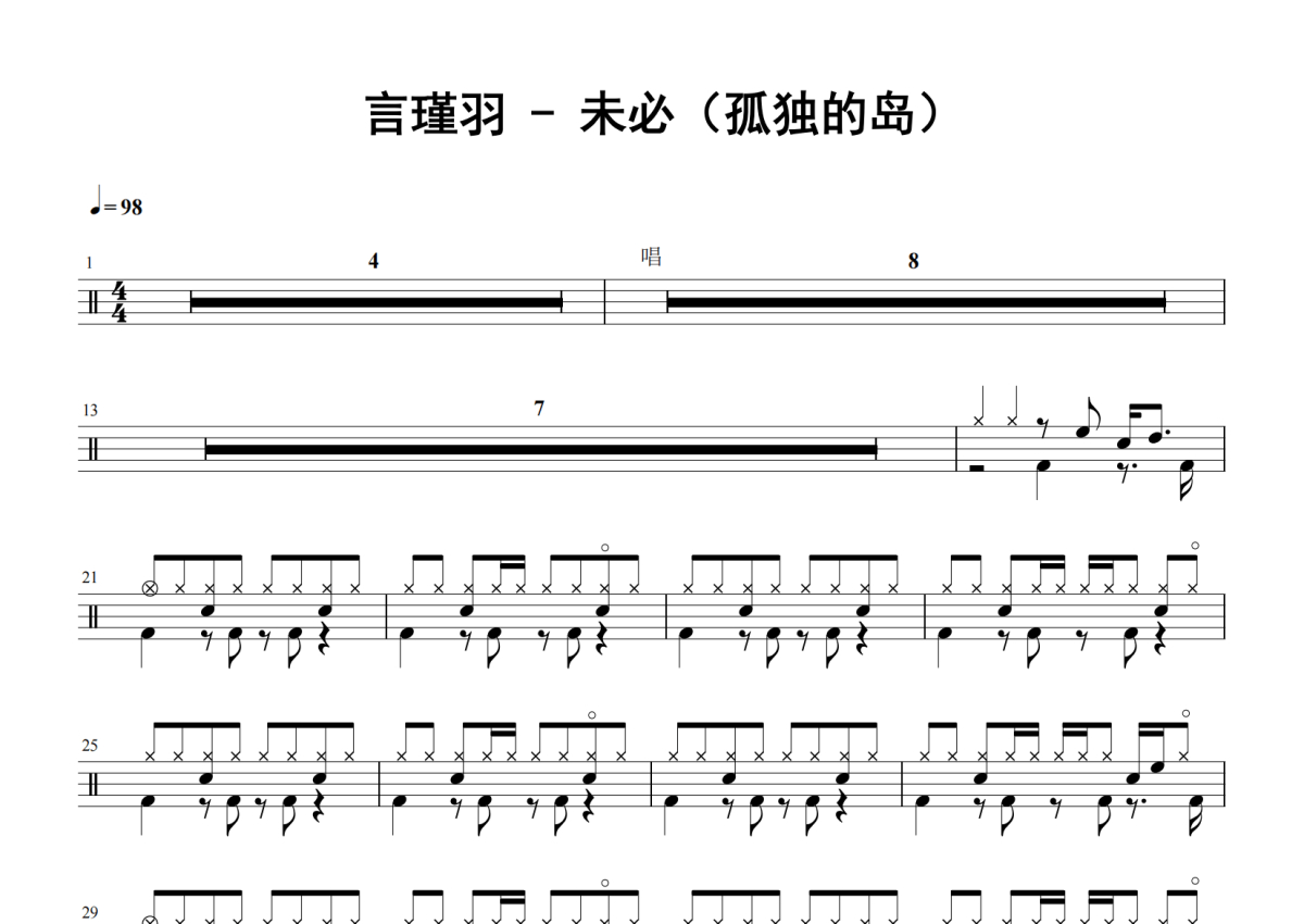 言瑾羽《未必(孤独的岛)》架子鼓谱