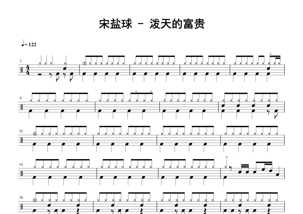 泼天的富贵架子鼓谱 - 宋盐球演唱
