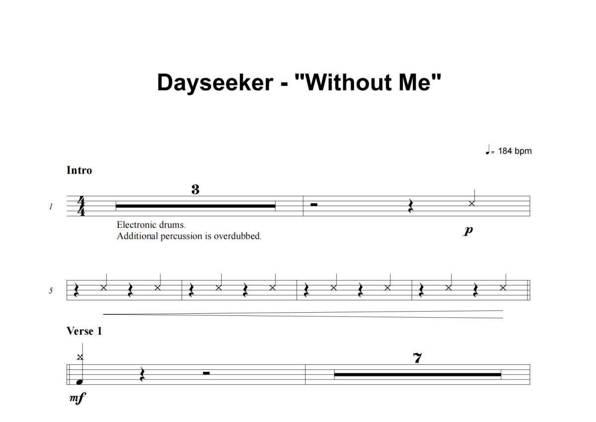 Dayseeker《Without Me》架子鼓谱