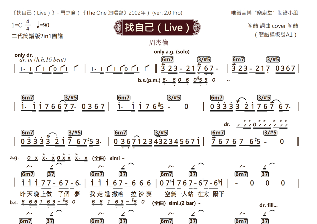 周杰伦《找自己(Live)》乐队总谱 - 2.0版2in1团谱