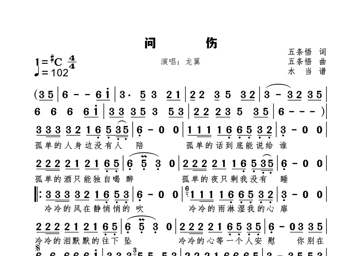 问伤简谱 - 龙翼演唱