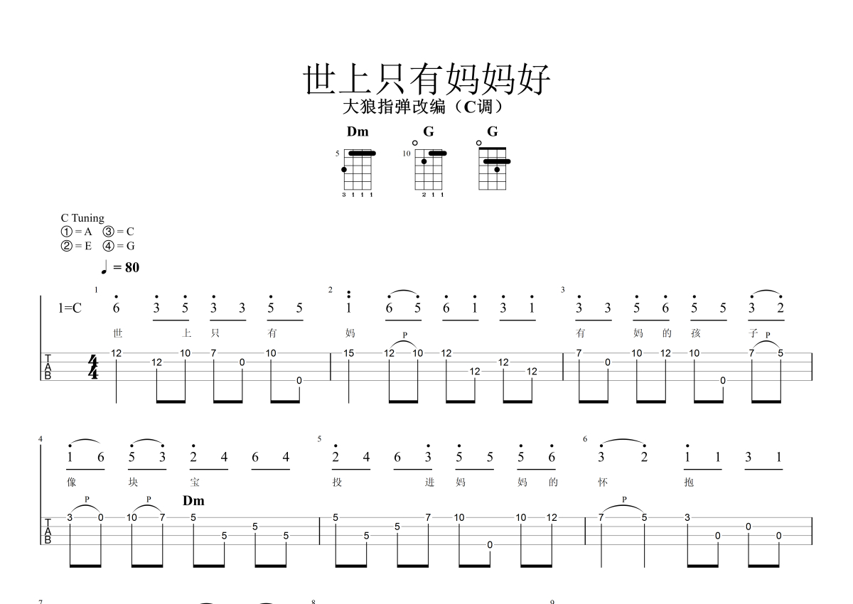 儿歌《世上只有妈妈好》尤克里里谱 - C调尤克里里谱 - 指弹