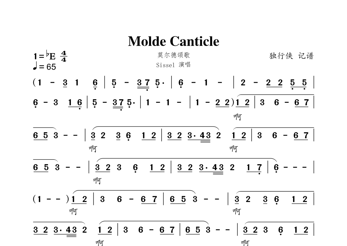Molde Canticle莫尔德颂歌简谱 - Sisse演唱