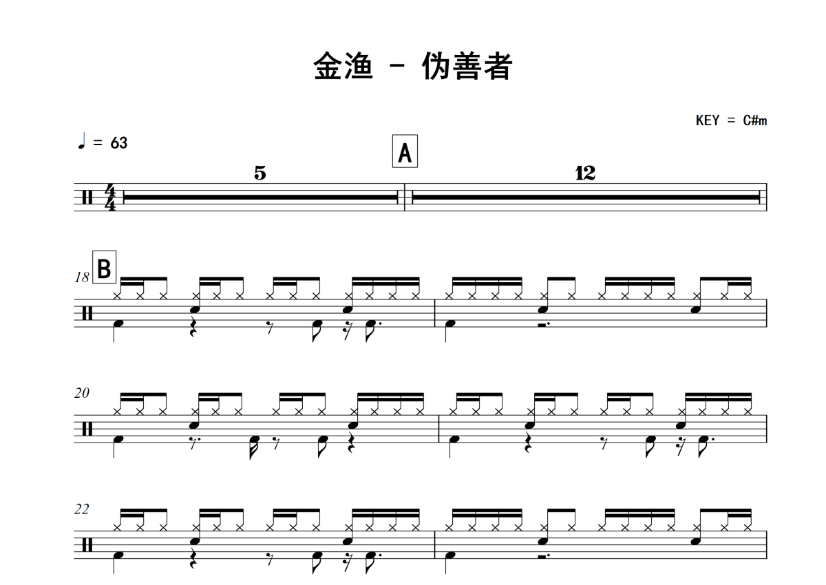 金渔《伪善者》架子鼓谱