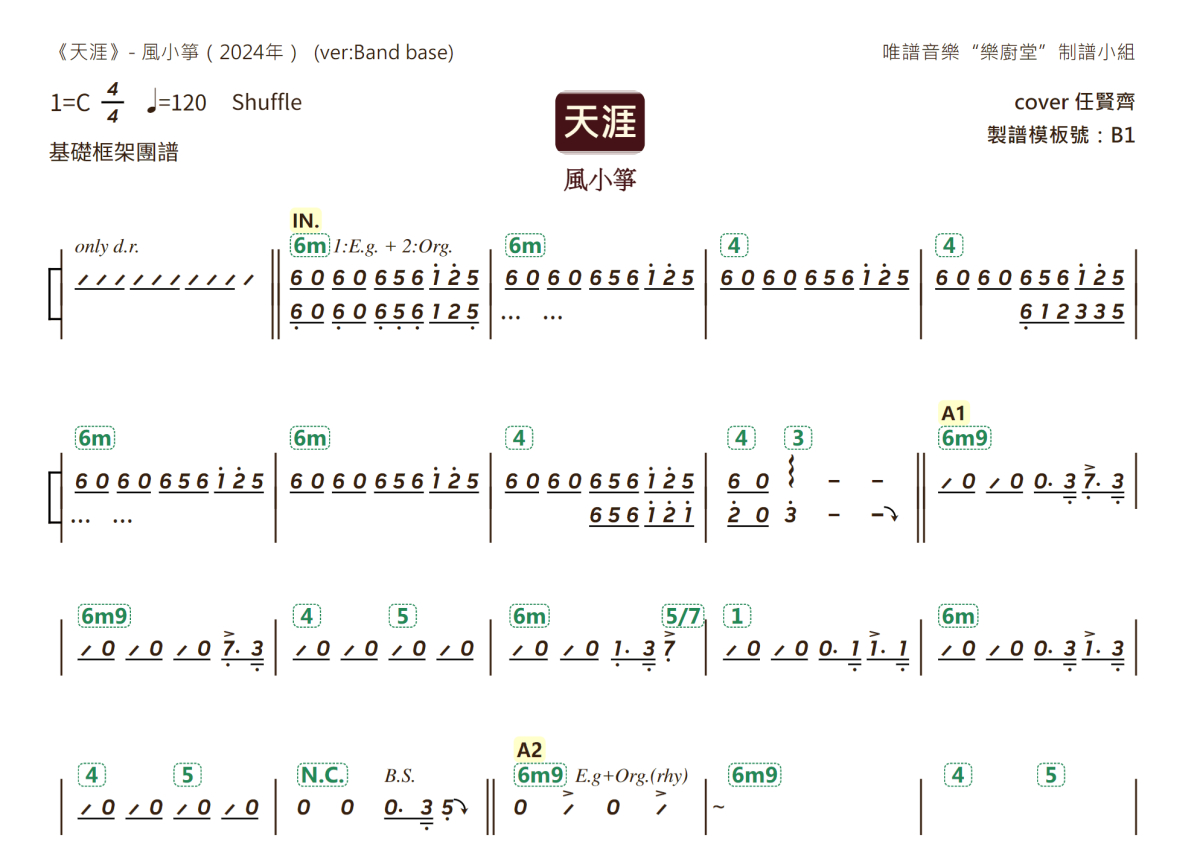 风小筝《天涯》乐队总谱 - 基础框架团谱